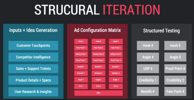 About 50 issues ago, I shared our creative matrix – how we think about Structural Iteration in ads (you can view the full article here):