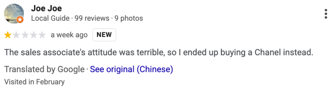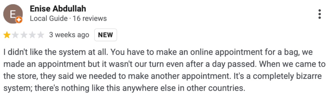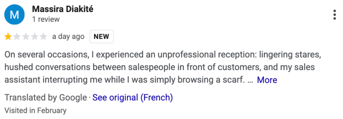 The Hermès store in Paris has hundreds of 1-star Google reviews just like these:
